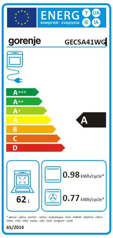 | Zapremina rerne | 62 l |