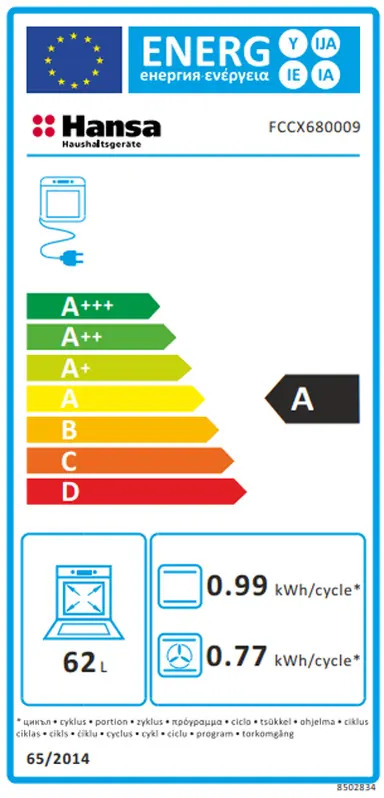 | Zapremina rerne | 62 l |