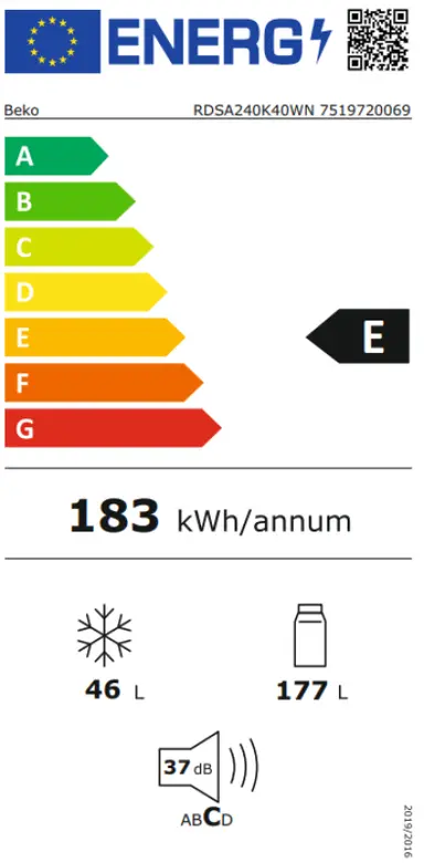 | Zapremina: | Ukupna zapremina: 223 l Zapremina frižidera: 177 l Zapremina zamrzivača: 46 l |