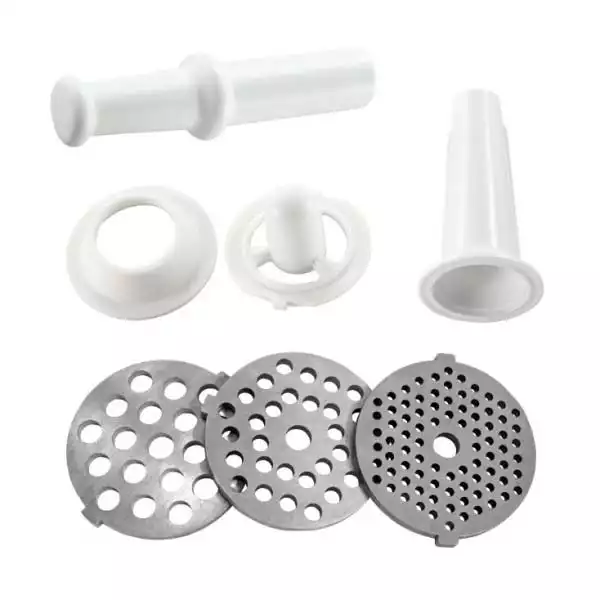 Pribor: Pasirka za paradajz, 3 nastavka za mlevenje mesa, nastavak za izradu kobasica