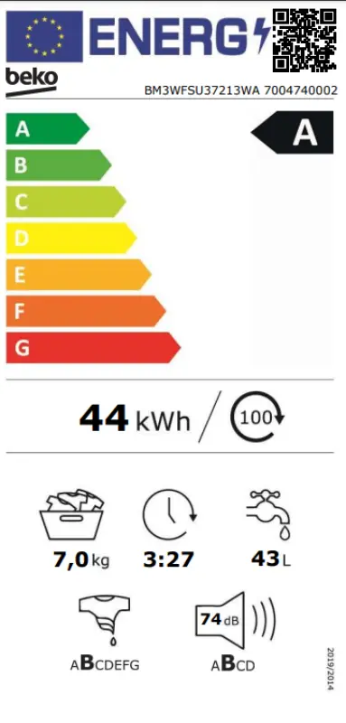 Potrošnja električne energije | 44 kWh kroz 100 ciklusa |