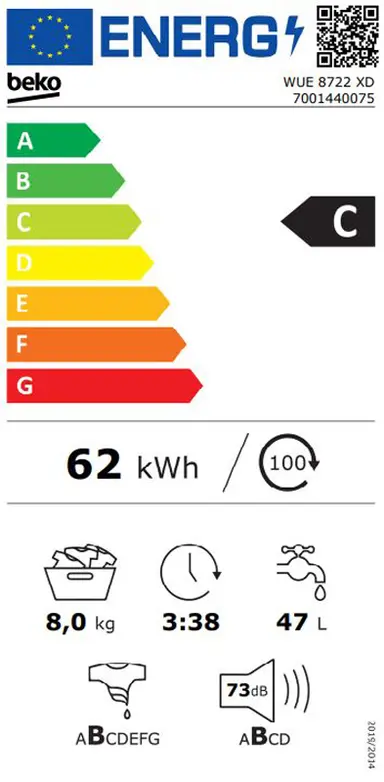 | Potrošnja električne energije | 62 kWh kroz100 ciklusa |