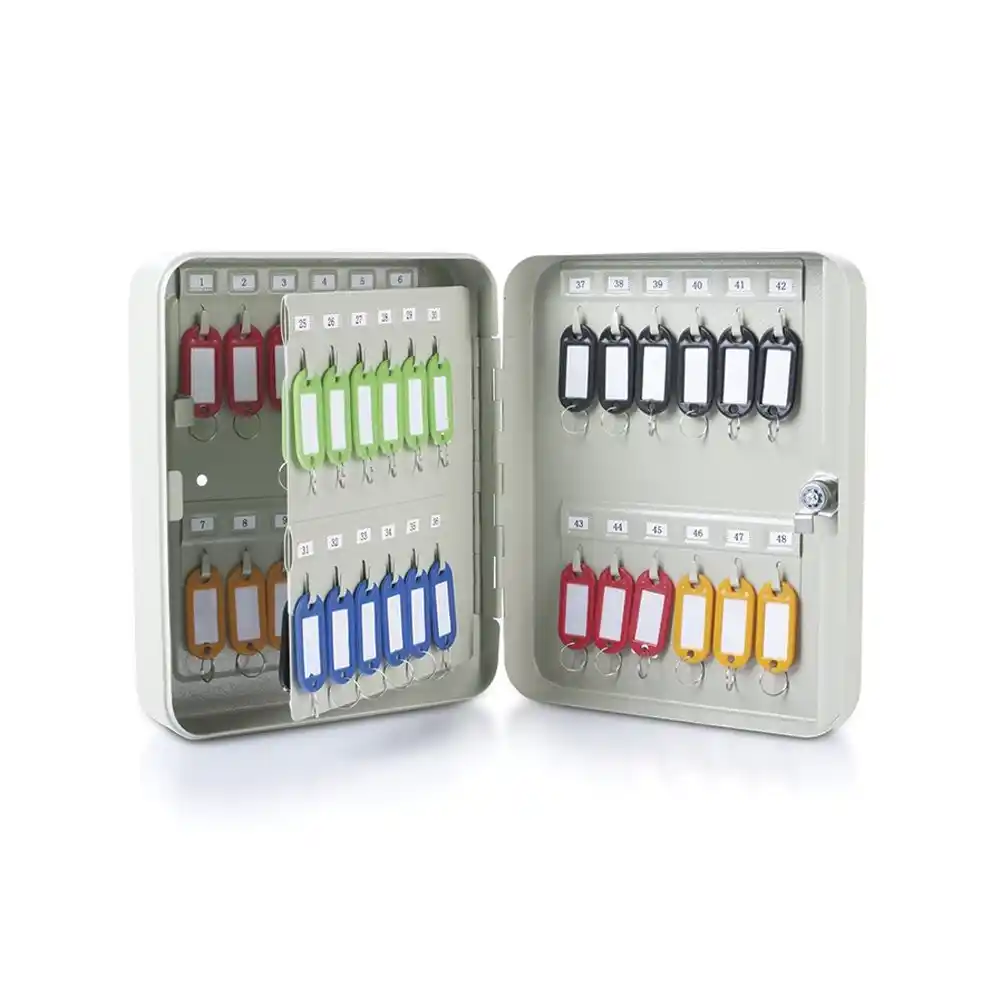 - Metalni ormarić za 48 ključeva - Zatvara se sa ključem (dobijaju se dva ključa) - 48 privezaka u pakovanju - Dimenzija: 250x200x80mm - Boja: siva |