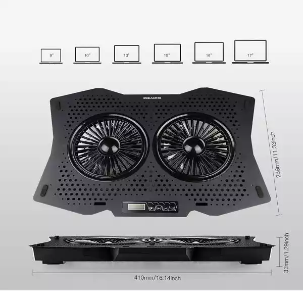 | Model | Postolje za laptop Zeus ES-AA4 14-18inc USB x 2/Ventilator 2x110/RGB digitalni kotroler LCD/Black |