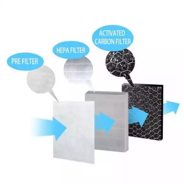 | Karakteristike | CADR (Brzina isporuke čistog vazduha): 150 m3/h; Za prostorije 35-50 m2; Količina negativnih jona: 5 miliona / cm3; 3 filtera : Predfilter + visoko efikasni hepa filter , filter sa aktivnim ugljem; 3 nivioa filtera , + generator negativnih jona , UV germicidna lampa; Efikasnost hepa filtera: 99,7%; Veliki LCD displej; Daljinski upravljač; Odabir 3 načina upravljanja: pametni , ručni i režim spavanja; Tajmer: 1 – 9h; Nivo buke : ? 50db; Dužina kabla: 1.5m; Težina (Kg): 5,45kg Dimenzije : 57.5 x 36.5 x 19.5cm Dimenzije filtera; 34 x 28.7 x 3.3cm |
