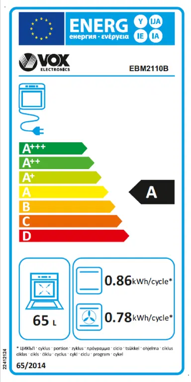 | Model: | Ugradna rerna Vox EBM 2110 B ventilatorska/zapremina 65l |