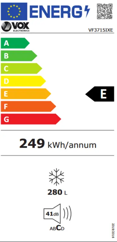 | Model: | Vertikalni zamrzivač Vox VF 3715 IXE |